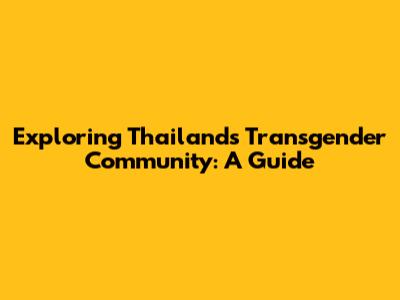 Exploring Thailand's Transgender Community: A Guide