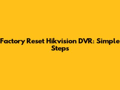 Factory Reset Hikvision DVR: Simple Steps