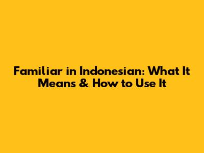Familiar In Indonesian: What It Means & How To Use It