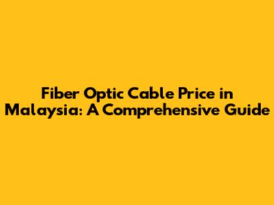 Fiber Optic Cable Price In Malaysia: A Comprehensive Guide