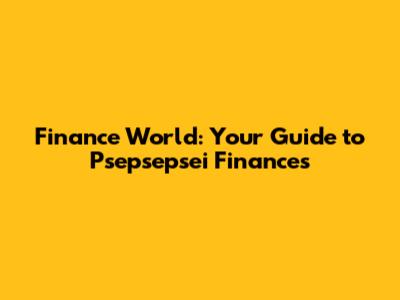 Finance World: Your Guide To Psepsepsei Finances