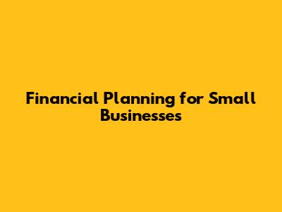 Financial Planning For Small Businesses