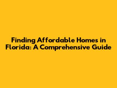 Finding Affordable Homes In Florida: A Comprehensive Guide