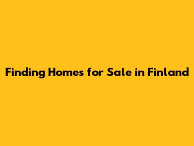 Finding Homes For Sale In Finland