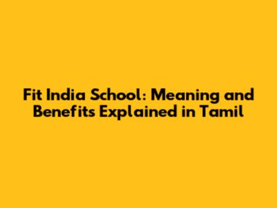 Fit India School: Meaning And Benefits Explained In Tamil