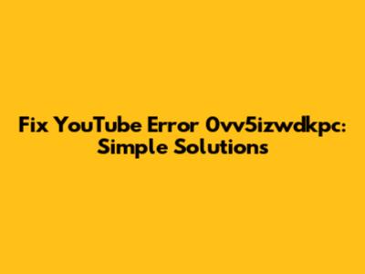 Fix YouTube Error 0vv5izwdkpc: Simple Solutions