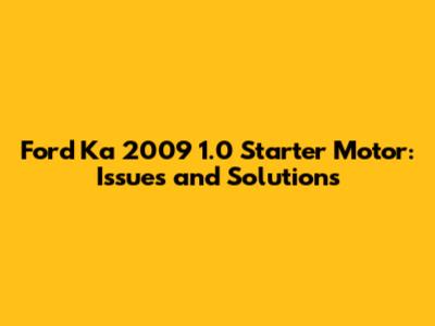 Ford Ka 2009 1.0 Starter Motor: Issues And Solutions