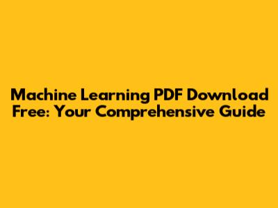 Finding a machine learning PDF download free is entirely possible with the wealth of resources available online. By leveraging university websites, open access journals, online learning platforms, and GitHub repositories, you can access high-quality educational materials without spending a fortune. Remember to start with the basics, practice regularly, and stay updated to make the most of your learning journey. Happy learning, and good luck mastering machine learning!