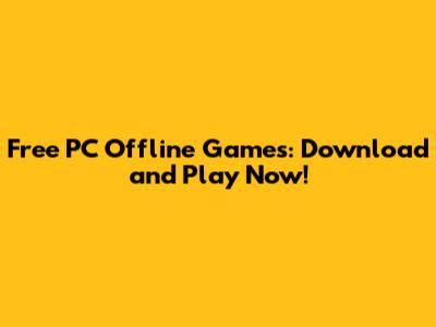 Free PC Offline Games: Download And Play Now!