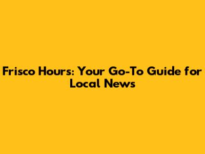 Frisco Hours: Your Go-To Guide For Local News