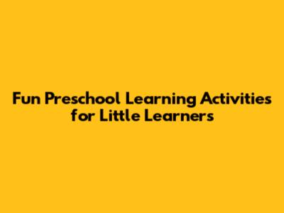 Fun Preschool Learning Activities For Little Learners
