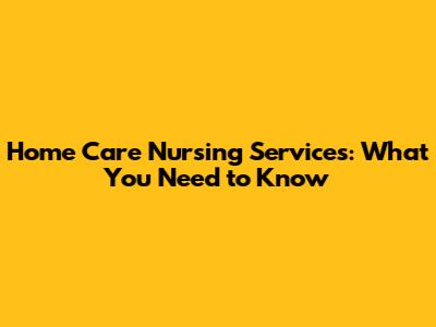 Home Care Nursing Services: What You Need To Know