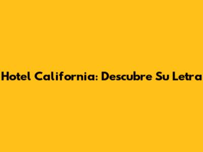 Hotel California: Descubre Su Letra