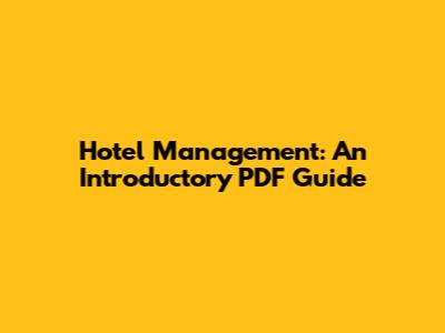 Hotel Management: An Introductory PDF Guide