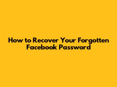 How To Recover Your Forgotten Facebook Password