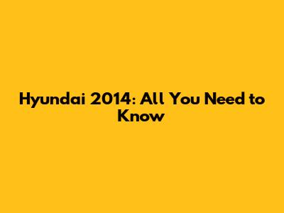 Hyundai 2014: All You Need To Know