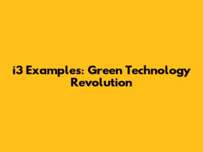 I3 Examples: Green Technology Revolution