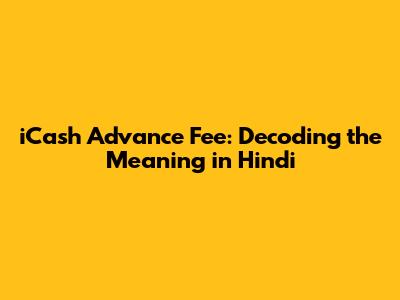 ICash Advance Fee: Meaning & Hindi Translation Explained