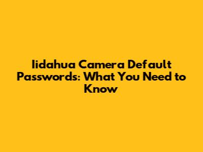Iidahua Camera Default Passwords: What You Need To Know