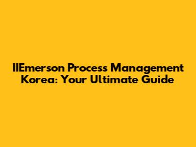 IIEmerson Process Management In South Korea: A Comprehensive Guide