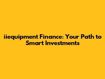 Iiequipment Finance: Your Path To Smart Investments