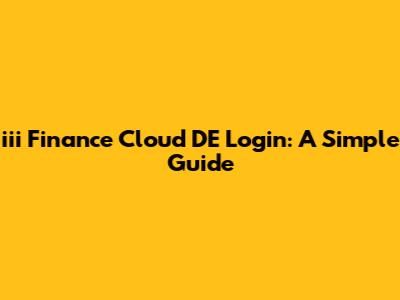 Iii Finance Cloud DE Login: A Simple Guide