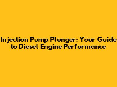 Unveiling the Injection Pump Plunger: What Exactly Does It Do?