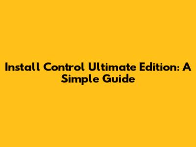 Install Control Ultimate Edition: A Simple Guide