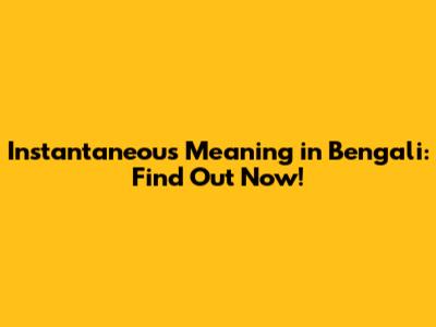 Instantaneous Meaning In Bengali: Find Out Now!