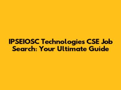 IPSEIOSC Technologies CSE Jobs: Your Guide