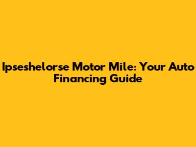 Ipseshelorse Motor Mile: Your Auto Financing Guide