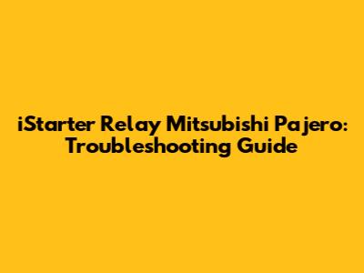 Troubleshooting Your Mitsubishi Pajero iStarter Relay