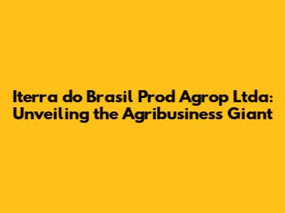 Hey guys! Ever heard of Iterra do Brasil Prod Agrop Ltda? If you're into agribusiness, or just curious about what's happening down in Brazil, you're in for a treat. This company is a major player, and we're going to dive deep into everything you need to know about them.
