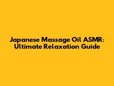 Japanese Massage Oil ASMR: Ultimate Relaxation Guide