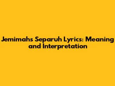 Jemimah's Separuh Lyrics: Meaning And Interpretation