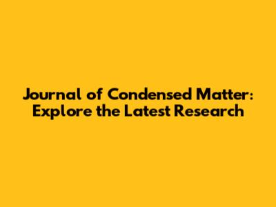 Journal Of Condensed Matter: Explore The Latest Research