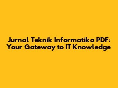 Jurnal Teknik Informatika PDF: Download & Resources