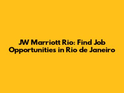 Are you looking for exciting career opportunities in the hospitality industry? The JW Marriott Rio de Janeiro might just be your dream destination! This luxurious hotel, known for its impeccable service and stunning location, frequently offers various job openings. In this article, we'll explore how you can find and secure a position at this prestigious establishment.