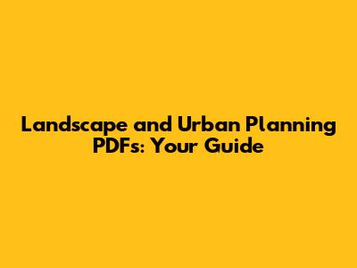 Landscape & Urban Planning PDFs: Your Guide