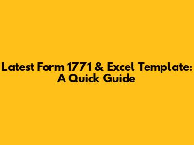 Latest Form 1771 & Excel Template: A Quick Guide