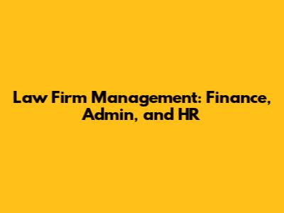 Law Firm Management: Finance, Admin, And HR
