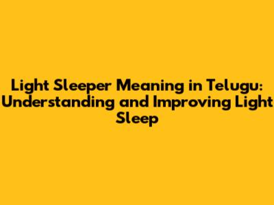 Light Sleeper: Telugu Meaning & Sleep Tips