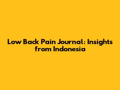 Low Back Pain Journal: Insights From Indonesia
