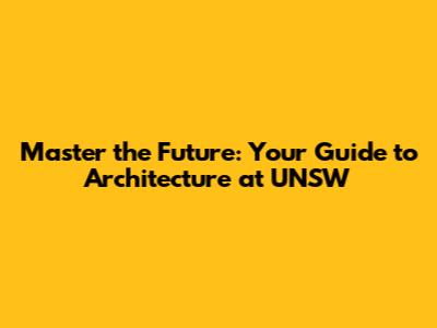 Master The Future: Your Guide To Architecture At UNSW