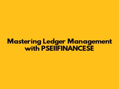 Mastering Ledger Management With PSEIIFINANCESE