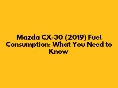 Mazda CX-30 (2019) Fuel Consumption: What You Need To Know