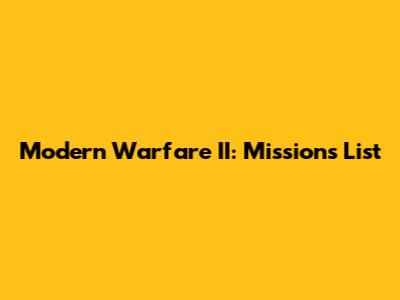 Modern Warfare II: Missions List