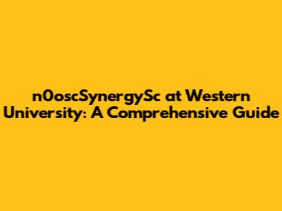N0oscSynergySc At Western University: A Comprehensive Guide