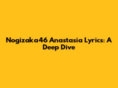 Nogizaka46 Anastasia Lyrics: A Deep Dive