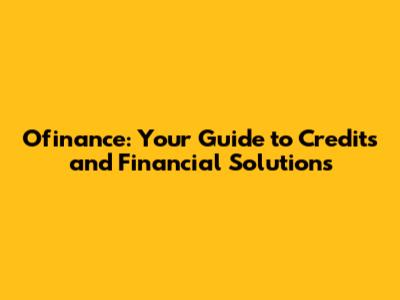 Ofinance: Your Guide To Credits And Financial Solutions